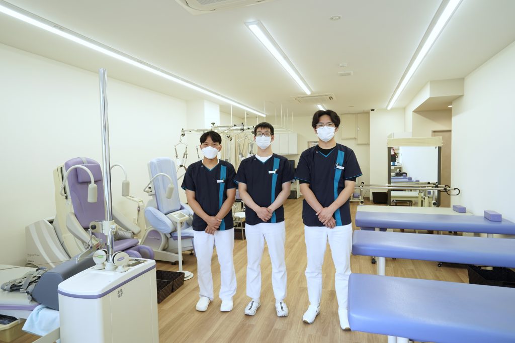リハビリの所要時間も20分というわずかな時間です。限られた時間の中で効果を体感していただき、ご満足いただけるよういつも患者さんと向き合うことを意識しています。目に見えるしっかりとした効果にまでたどり着くまでには時間がかかることもありますが、特に慢性的な痛みなどは効果的なストレッチの仕方を少し取り入れることで、楽になられた実感を感じていただきお帰りになられる患者さんはありがたいことにとても多いです。関節を動かしたり、私たちと一緒に筋トレをするような感覚でトレーニングに励まれる中、患者さんとは同志のような感覚になれる瞬間にもこの仕事のやりがいを強く感じます。患者さん一人一人との限られた時間の中で、なにかひとつでも多くご満足いただけることを見つけられるよう、スタッフ一同日々精進いたしております。